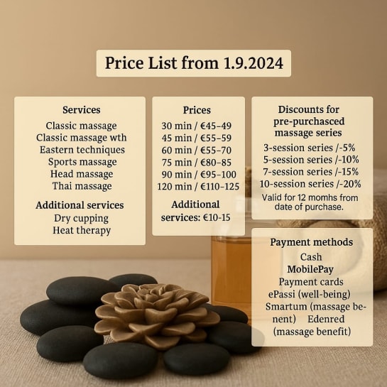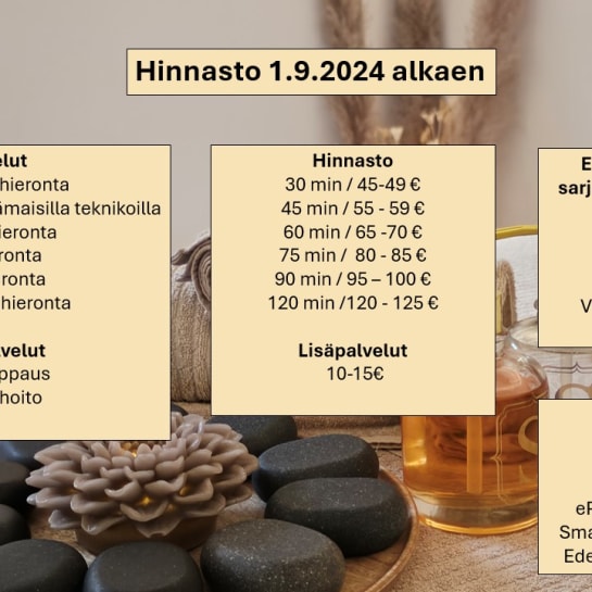 Astu sisään rauhaan ja lämpöön. Tervetuloa hoitolaamme rentoutumaan ja voimaan paremmin.